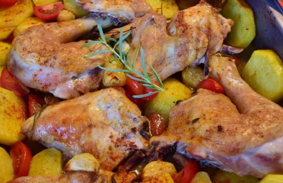 Kuracie stehná so zemiakmi preliate smotanovou marinádou