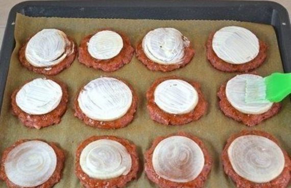 Fašírky z mletého mäsa s cibuľovými krúžkami