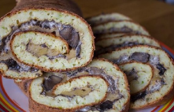 Roláda z cuketového cesta plnená voňavými šampiňónmi a syrom
