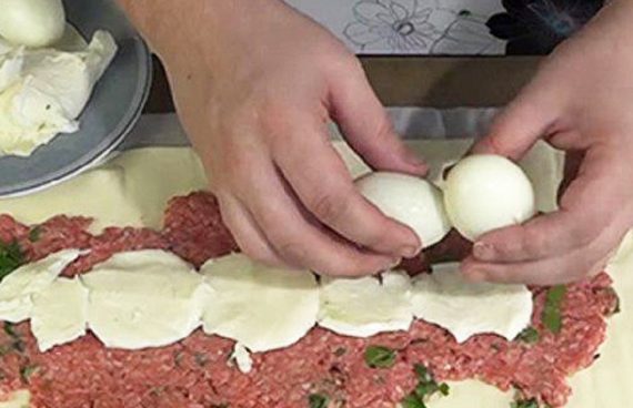 Bochník z lístkového cesta plnený mäsom a vajíčkami