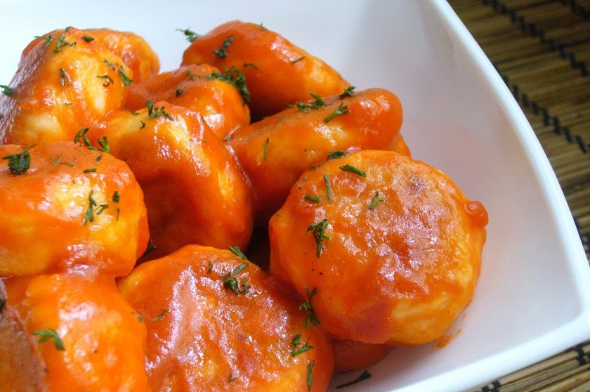 Z rovnakej zmesi si môžeme pripraviť aj karbonátky, ktoré na rýchlo osmažíme. Následne si k nim pripravíme omáčku. Nakrájanú cibuľu osmažíme na oleji, potom k nej pridáme polievkovú lyžicu hladkej múky a zamiešame. Prilejeme 3 polievkové lyžice paradajkového pretlaku a po niekoľkominútovom miešaní dolejeme 50 ml vody. Do omáčky následne pridáme karbonátky a dusíme ich, kým nie sú hotové.