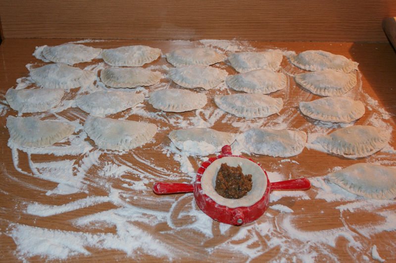 Vajcia najprv rozšľaháme vo vode a následne k nim pridáme soľ. Túto tekutú zmes potom prelejeme k preosiatej múke, pridáme olej a začneme hniesť cesto. Miesime dlhšie, pokiaľ nedosiahneme pružné a elastické cesto. Vypracovaný bochník zabalíme do fólie a necháme postáť v chladničke. Následne ho rozvaľkáme a plníme podľa chuti.