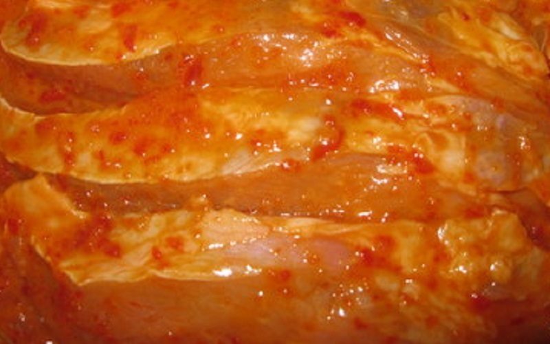 Mäso si v celosti umyte a osušte, urobte na ňom zárezy do ¾ hĺbky. Hrúbka medzi zárezmi by nemala presiahnuť 2 cm.