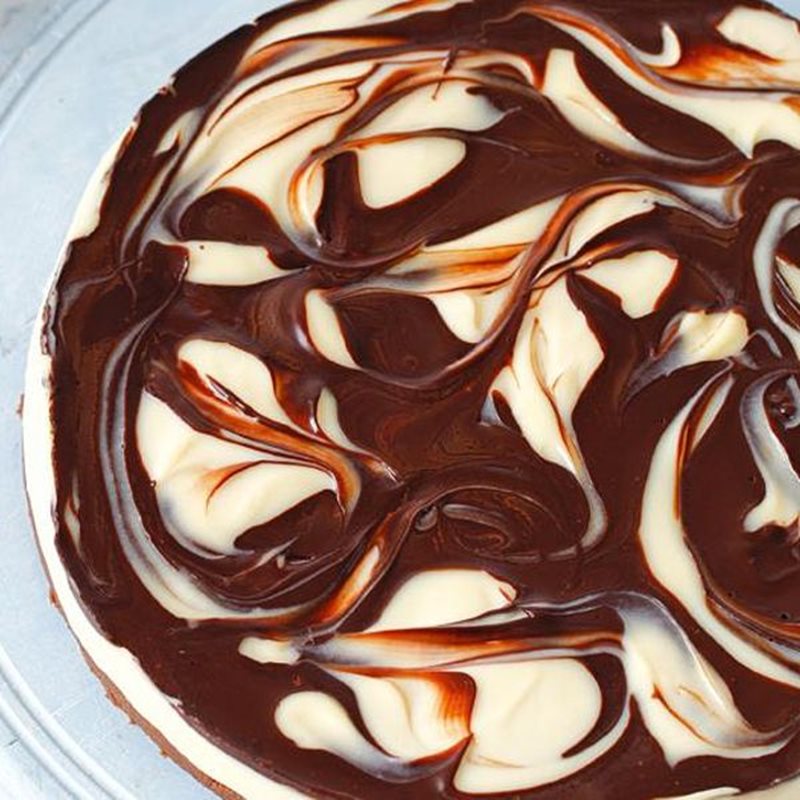 Najnáročnejšia časť je dekorácie. Pripraviť polevy nie je nič náročné, avšak zliať ich tak, aby bol výsledný efekt ohurujúci, to je už vec snaženia. Väčšinou sa začína  s bielou čokoládou, urobte však tak, ako sa vám páči. Najprv nalejte na koláč tenkú vrstvu bielej čokolády. Rozotrite alebo rozlejte ju tak, aby sa dostala až ku krajom tortovej formy. Na ňu nalejte pre zmenu tmavú čokoládu, no už nerozlievajte. Ak sa vám nepodarí polevu vyliať správne, maximálne ju veľmi opatrne a jemne rozotrite. Polevu musíte vyliať tak, aby ste na prvú vrstvu bielej čokolády spravili akoby menší kruh. Opäť nalejte bielu čokoládu a tak ako predtým tmavú. Kruh musí byť opäť menší. Takto postupujte pokiaľ sa vám bude dať, alebo pokiaľ sa vám bude páčiť. Potom zoberte špajdlu alebo ihlicu a prechádzajte z bielej čokolády do  tmavej a po celej ploche robte rôzne tvary. Hotovo!