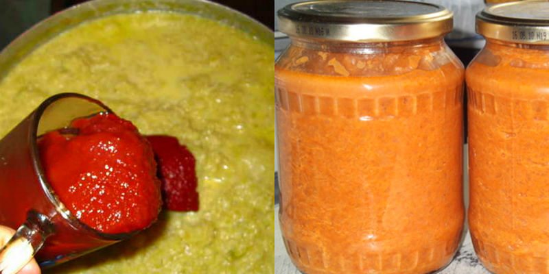 Všetku zeleninu, ktorú sme pražili na panvici dáme do mixéra a do hladka vymyxujeme. Pridáme paradajkový pretlak, premiešame a varíme na miernom plameni približne 30 až 40 minút, aby sa odparila voda a zmes ostala hustejšia.