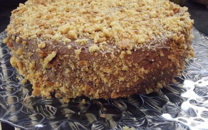 • Tortu môžeme krémom potrieť aj po obvode. Na vrch môžeme ešte rozmrviť trošku cesta, aby vznikla pekná posýpka. Prípadne si na pomoc môžeme zobrať aj drvené vlašské orechy. Marlenku dáme do chladničky, kde ju necháme stuhnúť aspoň na 6 hodín. Dobrú chuť.
