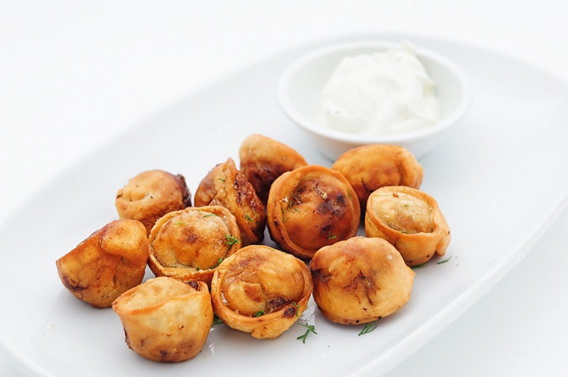 Táto metóda kombinuje vyprážanie a dusenie. Budete potrebovať len slnečnicový olej, 125 ml vody a korenie. Knedle vložíme na panvicu s horúcim olejom. Je dôležité, aby sa ravioli navzájom nedotýkali, inak sa môžu zlepiť a nik ich už neoddelí. Vyprážame ravioli do zlatista a do chrumkava. Keď sa na ceste začne tvoriť kôrka, podlejeme panvicu vodou a varíme až pokým sa voda celkom neodparí.