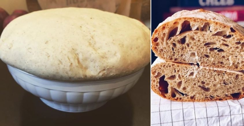 - Vytvoríme si bochník, ktorý ešte zabalíme do utierky a necháme kysnúť na teplom mieste. Rúru si predhrejeme na 250 stupňov a bochník dáme piecť, môžeme ho piecť v sklenenej mise spolu s pokrievkou.