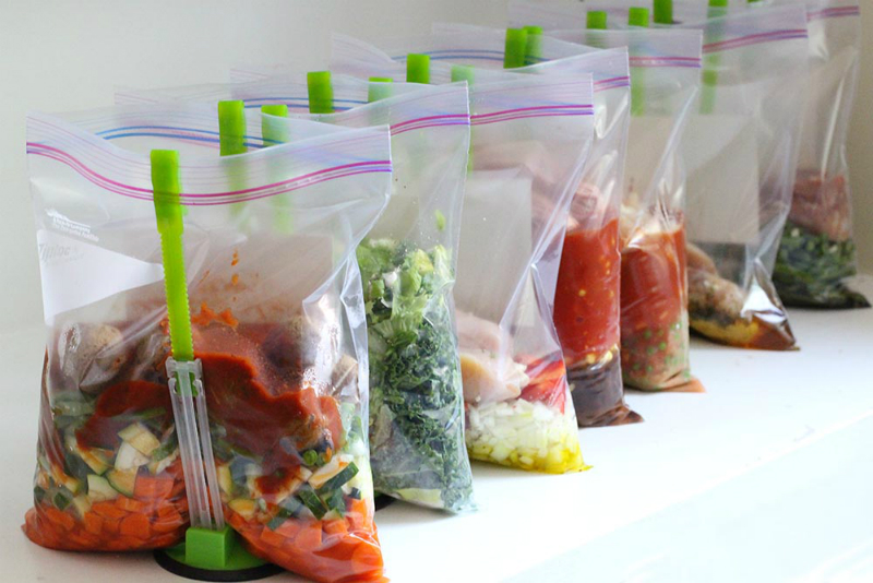 Mäso poduste alebo orestujte na panvici a nechajte vychladnúť. Potom ho už len vsypte podľa postupnosti do vrecka s ostatnou zmesou a dajte do mrazničky. Pri tepelnej úprave vysypte všetko do hrnca alebo do panvice a varte spolu niekoľko minút až domäkka.