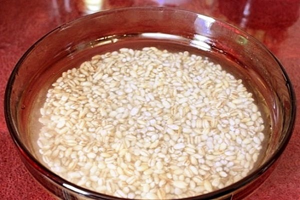 Jačmenné krúpy večer dôkladne opláchnite a na no zalejte studenou vodou.