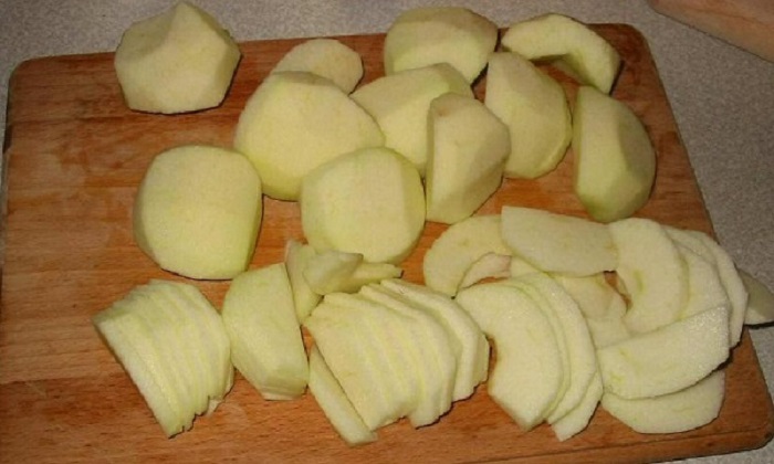 Jablká si narežeme na plátky, aby sa nám dobre prepiekli.