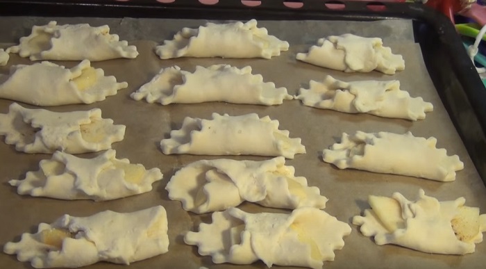 Potom jabĺčko zabalíme, ako je na obrázku a ukladáme na plech vystlaný papierom na pečenie.