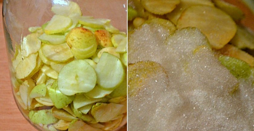 Jablká si umyjeme a nakrájame na tenké plátky. Odstránime jadro. Nakrájané plátky umiestnime do približne 3-litrovej nádoby tak, aby siahali takmer po vrch, posypeme ich hrozienkami a nakoniec pridáme cukor. Vrch zaizolujeme napríklad potravinou fóliou a odložíme približne na týždeň na tmavé miesto. Po ubehnutom čase fóliu odstránime a nahradíme ju gázou a nádobu umiestnime do chladničky na ďalších 4-5 dní. Po tomto čase by mušt mal byť hotový. Ak chcete, aby bol mušt viac sýtený a silnejší, pridajte ešte trochu cukru. Na zdravie!