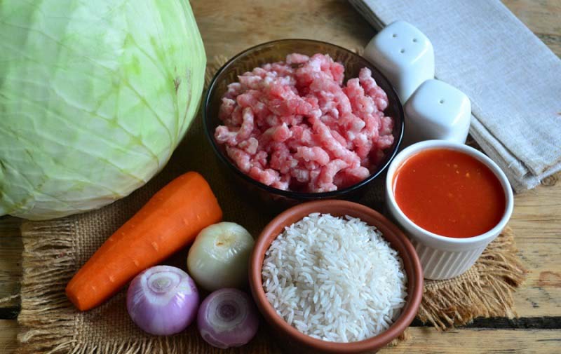 Ryžu si uvaríme v posolenej vode do mäkka, scedíme a necháme vychladnúť. Následne ryžu zmiešame s mletým mäsom, dusenou zeleninou a kyslou smotanou. Okoreníme a zmes poriadne premiešame.