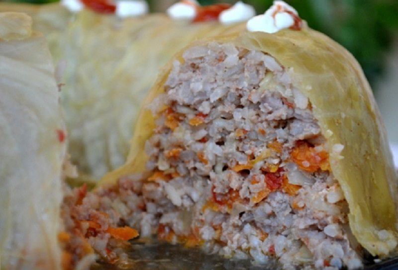 Zmesou naplníme formu vyloženú kapustovými listami. Na vrch poukladáme ďalšie listy tak, aby sme zmes úplne pozakrývali. Následne dáme do rúry.