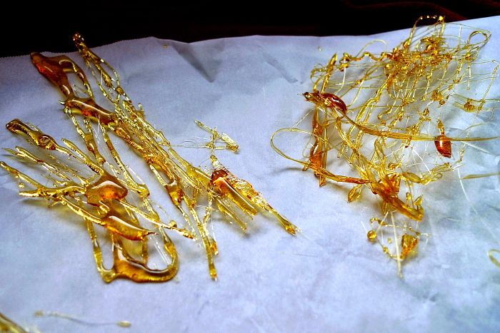 Keď je tekutý a má zlatistú svetlú farbu odstavíme ho z plameňa a necháme mierne vychladnúť. Na poriadne vymastený papier na pečenie potom lyžicou alebo varechou kvapkáme karamel do požadovaných alebo neurčitých tvarov. Po vychladnutí karamel odlupujeme a zdobíme ním nakrájaný zákusok.