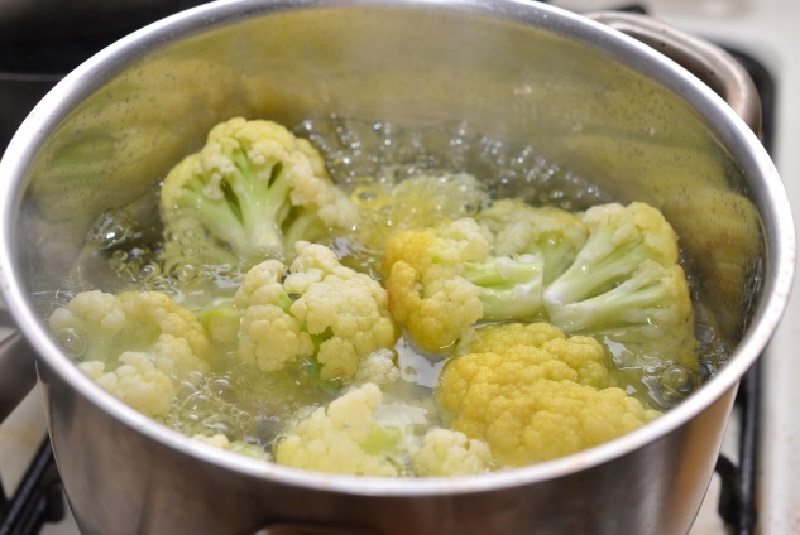 Karfiol si rozdeľte na ružičky a uvarte v slanej vode do polomäkka. Po uvarení karfiol sceďte cez sitko. Dbajte na to, aby ste ho nerozvarili. Vyprážaním ešte dôjde.