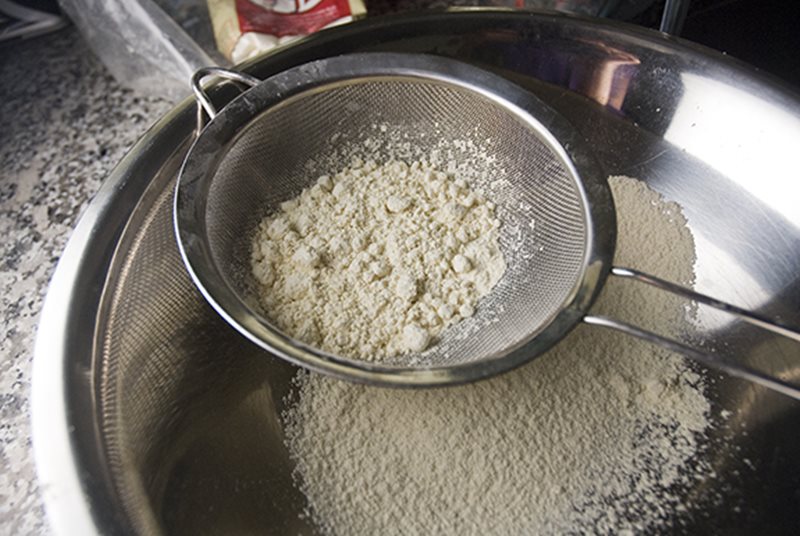 Múku si preosejeme v stredne veľkej mise, zmiešame s cukrom, soľou a práškom do pečiva. Pridáme roztopené maslo a šľaháme na nízkych otáčkach spolu so sypkými surovinami, až kým sa všetko poriadne nezmieša. Do tejto hmoty pridáme nasekanú čokoládu, premiešame a nakoniec pridáme mlieko a smotanu, aby nám vzniklo jemné cesto.
