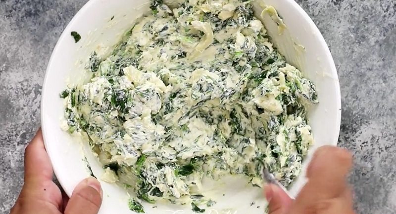 Cuketu si nastrúhajte na jemnom strúhadle, trochu ju posoľte a nechajte ju, aby pustila šťavu .Tú potom rukou vytlačte zo zeleniny von. Postrúhajte si aj tvrdý syr a pretlačte doň cesnak. Zmiešajte ho s cuketou a pridajte mascarpone, čerstvý špenát, a soľ.