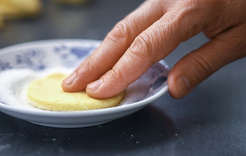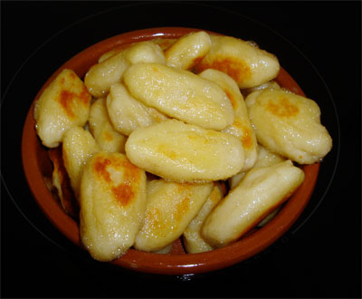Hrudkovitý tvaroh pretlačte cez sitko. Nemal by byť ani veľmi suchý, ani veľmi šťavnatý. K pretlačenému tvarohu pridajte cukor, vajce a štipku soli. Poriadne premiešajte a naberajte do dlaní stredne veľké guľky. Tie namočte do taniera s múkou a v dlani z nich spravte hrubšiu placku.