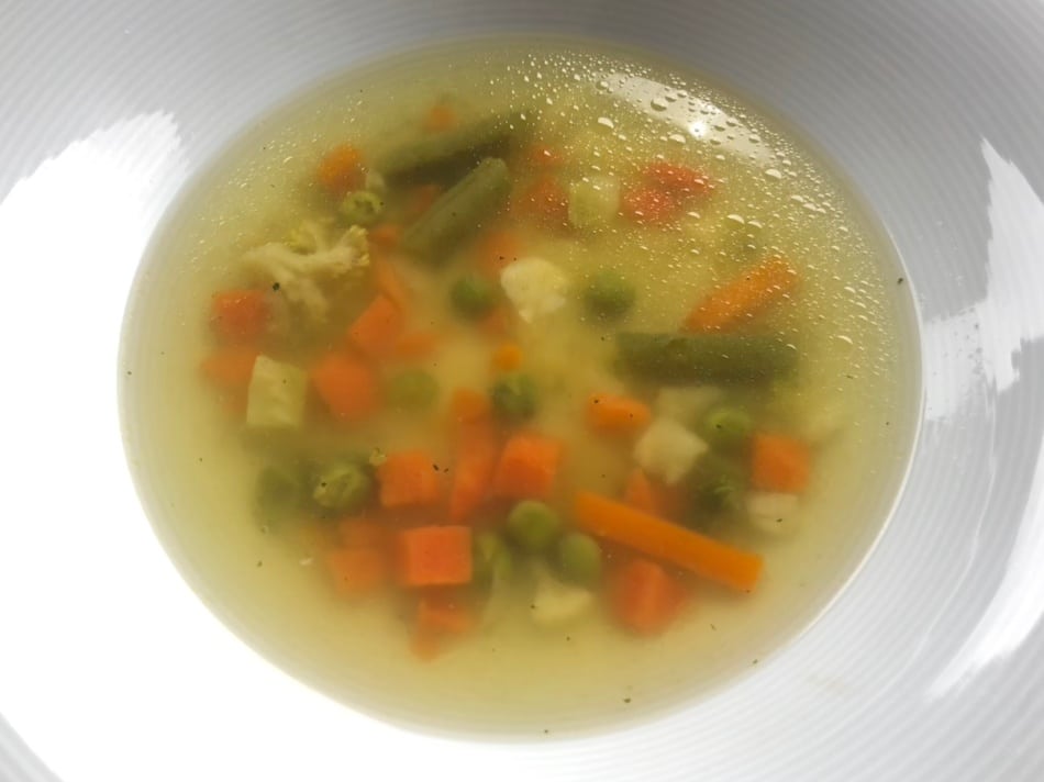 Dáme si zovrieť vodu do hrnca. Po tom, ako nám voda zovrela pridáme slepačie, alebo kuracie krídla a zeleninu. Keďže ide o rýchlu, ale zároveň aj chutnú polievku, zvyčajne používam mrazenú zeleninovú zmes, ale pokojne môžete použiť aj čerstvú zeleninu. pridáme tiež vegetu, cca 1 polievkovú lyžicu – keďže je bez bujónu. Varíme asi 30 minút, podľa potreby, odporúčam neustále ochutnávať a dopĺňať ingrediencie podľa chuti.