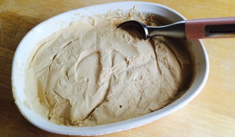 Dajte zmes do uzatvárateľnej dózy a uložte do mrazničky. Na druhý deň môžete maškrtiť. Z vlastnej skúsenosti odporúčame zmrzlinu počas prvých dvoch troch hodín niekoľko krát v mrazničke premiešať.  Zabránite tak vzniku ľadových kryštálikov a zmrzka bude mať tú správnu konzistenciu. Prajeme ničím nerušené sladko-studené chvíle potešenia!