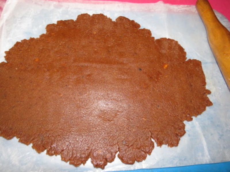 Začnite rolovať pomocou potravinovej fólie, čo najopatrnejšie. Ak sa vám cesto pretrhne, len ho zlepte prstami opäť dokopy. Rolku zabaľte do alobalu alebo potravinovej fólie a nechajte minimálne hodinu stuhnúť v chladničke.