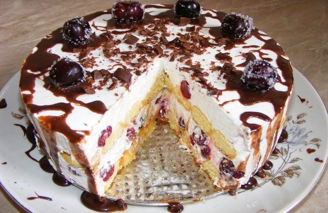 Nepečená višňová torta s piškótami