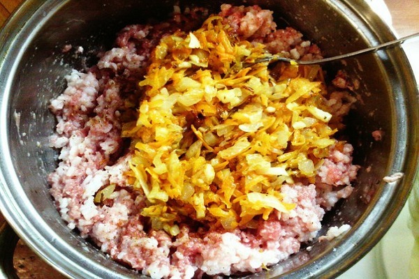 Nevarte ju do mäkka, pretože dôjde ešte teplom v rúre počas pečenia. Na panvici si jemne osmažte nakrájanú cibuľu a mrkvu, aby pustili šťavu a vôňu. Potom zmiešajte ryžu, cibuľu, mrkvu a mleté bravčové mäso.