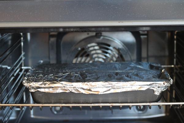 Plech prikryte alobalom a dajte piecť do rúry vyhriatej na 200 stupňov na približne 30-35 minút.