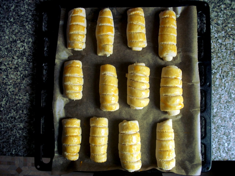 Plech si vystelieme papierom na pečenie a rožtek po rožteku ukladáme vedľa seba. Potom si rozmiešame žĺtky a potrieme každý rožtek zvrchu. Necháme ešte 20 minút kysnúť na plechu.