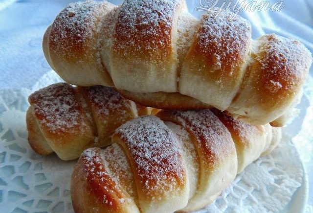Rúru si predhrejeme na 150 stupňov a pečieme približne 30 minút, kým rožteky nie sú zlatisté. Všetky posypeme práškovým cukrom a podávame ešte teplé. Dobrú chuť!