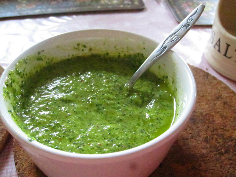 Kôpor nasekáme nadrobno. Cesnak pretlačíme alebo tiež nasekáme nadrobno. Následne kôpor a cesnak umiestnime do mixéra. Pridáme olivový olej a okoreníme a osolíme podľa chuti. Všetko spolu zmixujeme. Pridáme jogurt a všetko spolu zmiešame alebo zmixujeme na nízkych otáčkach.