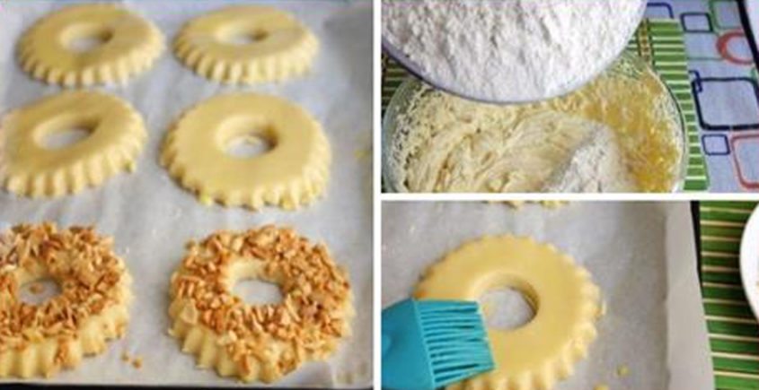- V miske si zmiešajte práškový cukor, vaječné žĺtky, maslo a vanilkový cukor. Pridajte vanilkový cukor a prášok do pečiva a vypracuje maslovú zmes. Potom pridajte preosiatu múku a vymieste cesto.