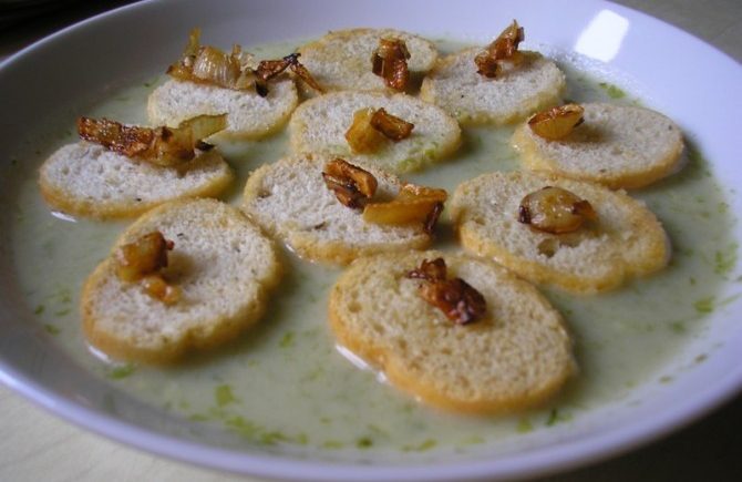 Hovorí sa, že láska ide cez žalúdok a ak je jedlo voňavé platí to dvojnásobne. V prípade tejto krémovej polievky z medvedieho cesnaku to platí dvojnásobne. Nielenže je zdravá, ale aj krásne aromatická. Nebojte sa, že vám bude celý dom smrdieť po cesnaku. Muškátový oriešok z cesnakovej vône spraví niečo oveľa lepšie.