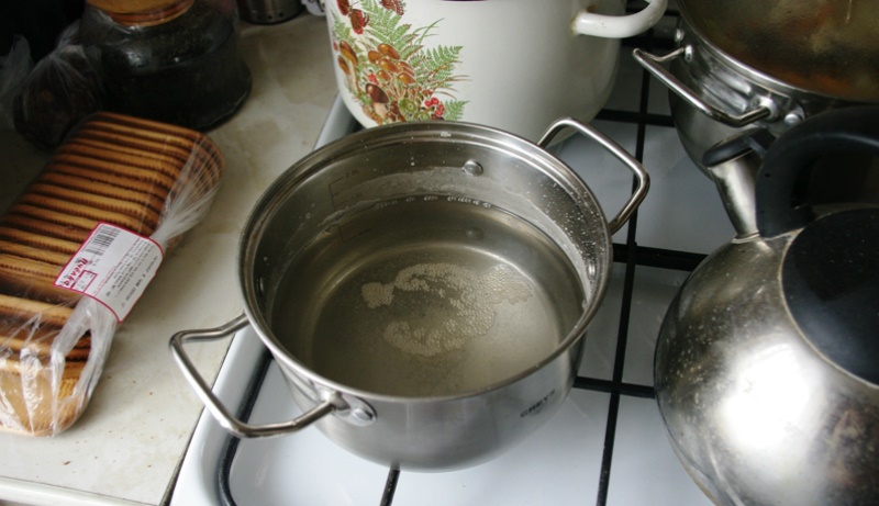Pripravte si slaný roztok. Nalejte vodu do hrnca, pridajte soľ a nechajte povariť približne 30 minút.