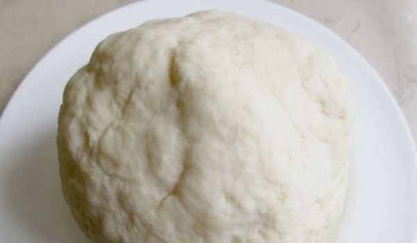 Do misy vysypeme 3 poháre múky a pridáme soľ. Následne prilejeme perlivú vodu a všetko dôkladne premiešame. Z týchto surovín vymiesime cesto, ktoré by malo byť mäkké a pružné.