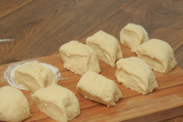 Zvyšný pohár múky použijeme na dopracovanie cesta na doske. Z pripraveného cesta vytvoríme valec, ktorý rozdelíme na 15 rovnakých častí.