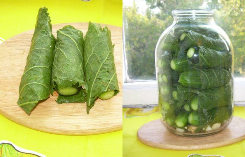 Uhorky umyte a odrežte im konce. Chrenové listy opláchnite a narežte ich podľa veľkosti uhorky, aby sa do nich dali pekne zabaliť. Každú uhorku zabaľte do kúska chrenového listu, stačí jedna vrstva.