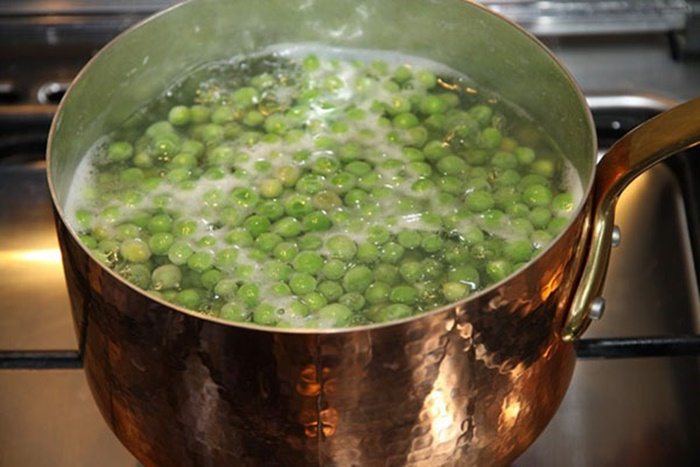 Hrášok si jemne predvarte, približne 15-20 minút.
