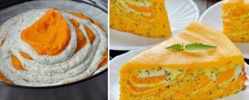 Máte chuť na niečo typické jesenné? Vyskúšajte túto tvarohovo-makovú tortu s tekvicou. Netradičný vzhľad podčiarkuje delikátnu chuť a vaše srdce zaplesá v momente, ako ochutnáte prvý kúsok. Kombinácia tekvice, sladkého tvarohu a maku je jednoducho neodolateľne jesenná! Budete potrebovať: 800g tekvice 500g jemného tvarohu 200g práškového cukru 5 vajec 2 PL škrobu 25g maku trochu pomarančovej kôry 100g kyslej