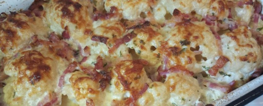 Ak máte radi zapekané jedlá, tento recept jednoducho musíte vyskúšať. Je veľmi jednoduchý a neuveriteľne chutný. Môžete ho pripraviť vo viacerých variáciách a to len zamenením jednej prísady. Stačí ak vymeníte šunku za klobásku, alebo salámu a celé jedlo dostane úplne inú chuť! Budeme potrebovať: 1 kg karfiolu 3 vajcia 1 šálka kyslej smotany 850