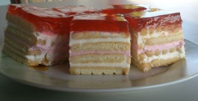 Nepečené studené rezy so smotanovo-jahodovým krémom