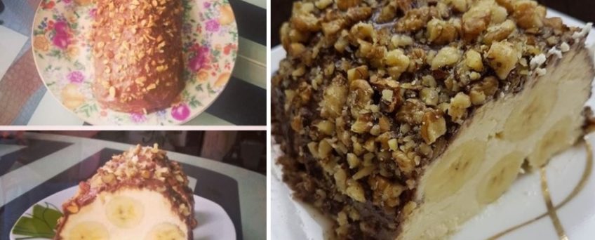 Nepečený dezert s banánmi a tvarohom v čokoláde