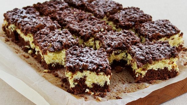 Kto by nemal rád obľúbený tvarohový dezert Pribináček? Dnes vám prinášame fantastický recept na rezy, ktoré sú plné tvarohového krému, jemného čokoládového korpusu a chutia naozaj skvele. Ak chcete tip, ako ich pripraviť, ste tu správne. Budeme potrebovať: Cesto 4 vajíčka 200 gramov cukru 70 ml vlažnej vody 70 ml oleja 250 gramov polohrubej múky