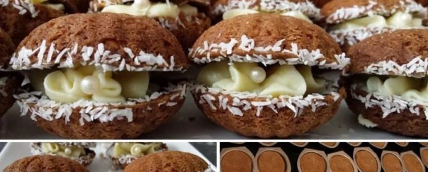 Chcete byť na Vianoce za najväčšiu hviezdu medzi pekárkami? Potom určite vyskúšajte tento recept na krásne vianočné pečivo plnené žĺtkovým krémom a s drobným prekvapením v podobe perličky vo vnútri. Mušličky vytvarujete z formičiek na „vianočné oriešky“ a vyzerajú naozaj dokonale. Budete potrebovať: Cesto: 180 gramov masla 100 gramov práškového cukru 100 gramov mletých orechov