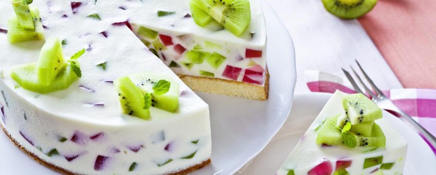 Kto by nechcel počas horúcich letných dní osviežujúci dezert? Ak nie ste veľkým fanúšikom zmrzliny, potom vás poteší táto jednoduchá želé torta, ktorá je rýchla na prípravu a láka svojou farebnosťou. Budeme potrebovať: 90 gramov čerešní (môže byť kompót) 90 gramov jahôd 150 gramov broskýň (kompót) 25 gramov želatíny 580 ml vody 500 gramov kyslej