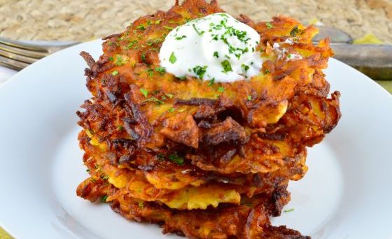 Pripravte si fantastické chrumkavé placky zo sladkých zemiakov. Špecifická chuť a vôňa si vás ihneď podmaní. Pripravíte ich veľmi rýchlo a jednoducho podľa nasledujúceho receptu. Placky so smotanou či paradajkami, chrumkavé na povrchu a krásne voňavé. Budeme potrebovať: 1 veľký batat (asi 300 g) 1/2 malej cibule 1 strúčik cesnaku 2 vajcia 3 plnšie lyžice
